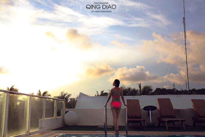 虽然不是无边泳池,还是可以隐约的看到前方的大海。