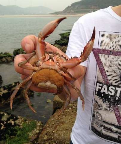 月亮湾景区有非常长的一道铁制网格护栏,根本没办法翻进去。(我也是第二天才知道如何逃票进去,在此不表,后文详述)。可是我们俩运气好,沿着公路走了一段路,居然发现铁网格栏连接处被撕开了一道大口子。来自游记长岛捕蟹记,感受渔家生活