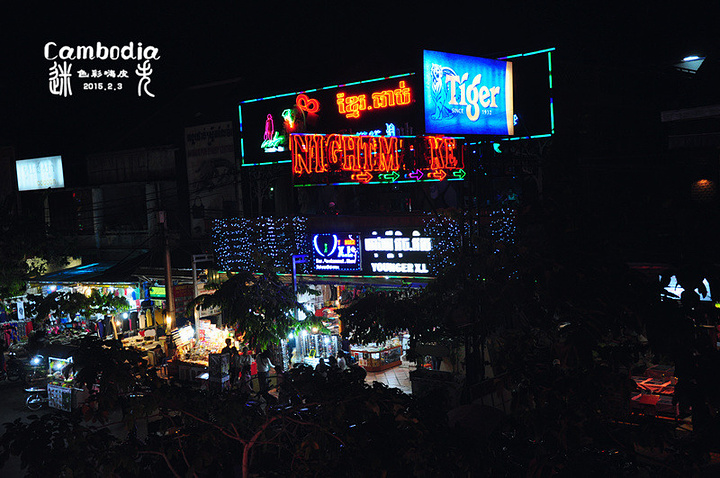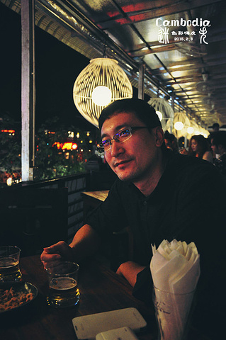 吃过晚餐,行程还没有结束,今天最后的行程,洋人街!所谓洋人街其实就是暹粒的老市场,这里有着琳琅满目并具有地方特色的各类商品,木雕、服装,有着令人垂涎欲滴的夜市小吃,品种繁多的热带水果,特别是这里的夜市酒吧街,酒吧林立,各具特色,时尚梦幻,让人们久久不愿离去。随着越来越多的外国游客来到这里逛街、泡吧、吃小吃,当地人就称这里为洋人街。这里是各国游人来到暹粒必去的地方。到达洋人街已经是晚上九点了,导游准备给我们一个小时左右的时间游览购物泡吧,团里的年轻人对这么短的时间都很不满意,所以就开始有人圈拢,在这边玩尽兴后自己打车回宾馆,脱团属于国外跟团旅行的大忌,所以导游不同意,说是要求所有留下的人写一份声明,内容就是在脱团之后发生的任何事情和意外都和旅行社没有半点关系,并要求留下的人在声明上签下名字。好像是生死状的感觉。这一下把有心出去玩的人镇住了。团里只有我和冒冒,妍妍和琳琳在客栈拟好声明签上了名字,就这样,四人小组成立。我们四个在后来柬埔寨的旅程中一起经历了很多的欢乐和故事,一切都是从这一刻开始的。签完字我们四个跟随大部队一起大致转了一下洋人街,虽然已经是晚上九点多,可这里依然是游人如织,霓虹闪烁,商铺林立,遍地酒吧,非常热闹。我们简单逛了几家商铺,看了看木雕等手工艺品和特产,由于是走马观花,也没买什么东西。因为我们不着急回酒店,所以逛到最后就剩下我们四个。导游之前将我们所住宾馆的早餐票发给了我们,上面有宾馆的名字、地址,根据这个我们就能够打车回宾馆。此时的心情突然非常兴奋,和刚认识不久但是性格相投,有点默契的朋友,在这神秘而遥远的国度,可以开怀畅饮谈天说地的感觉会有多棒呢,非常期待!在我们找酒吧的时候,我开玩笑的对他们说别把我丢了,我没带护照,没带电话,现金有限,这要是在这儿丢了,可就是真的迷失柬埔寨了。妍妍很聪明,对我说“来,你用相机把我们的宾馆早餐票拍下来,要是丢了,给人家看照片就找回去了”!我们找了一家位于二楼开放式的的演艺吧,坐在位于窗口的位置,可以一边看演出,一边看街景。服务员拿着菜单上来,语言是真不通,我们和服务员的英语都有限,还好菜单上有图片,由于之前的晚餐吃的都很饱,我就像模像样的点了一份薯块和腰果。点啤酒的时候我提议,我们按轮喝,把这里所有没喝过的啤酒都来一遍,开始他们还都很惊讶,可没想到最后真按照我的话去了,居然一轮还没喝够。菜一上来,大家都蒙了,我以为的薯块其实是当地很有名的酸木瓜,它是经过腌制发酵以后切成片,沾着当地的辣椒酱吃,味道酸辣可口,可谓下酒良菜。大家只好将错就错,多品尝了一道当地特色小吃。因为酸木瓜被他们笑话了一路,真是和薯块的差距太大了!由于柬埔寨盛产腰果,上来的腰果本身又大又香,再用糖和盐焗一下,味道超级好,一份都没够,要了两份。后来又加了一份薯条。啤酒第一圈点的是当地的吴哥啤酒(Angkor),第二圈点的是柬埔寨王国啤酒,第三圈是泰国的ABC黑啤,第四圈是虎牌啤酒。听着马来西亚风格的乐队演出,看着异域洋人街的霓虹闪烁和人来人往,吹着一袭凉爽晚风,喝着爽口的异国啤酒,和这几个刚刚认识的,有些陌生,有点神秘,有点默契,志同道合的伙伴聊着人生理想。还有何求呢?
