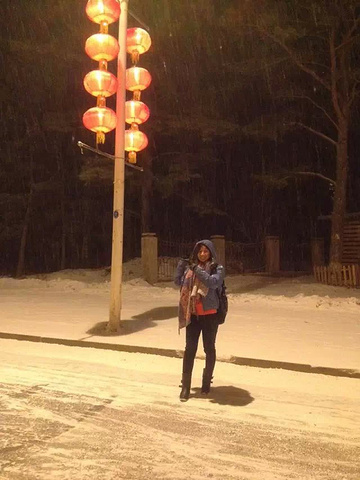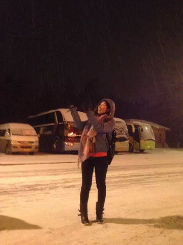今天又是早机,7点半的飞机,所以4点半又得爬起来,悲催的是飞机还要经停大连,去到通化都是下午1点的时候,通化机场真的狠小,都比不过我们一个客运站。刚下飞机拿到行李我们就开始换装备,其实就是拿羽绒出来穿吧,刚下飞机是零下5度,即使穿着平常的靴子、厚一点的裤子,也不觉得冷,可是我们真的好饿啊。导游接到我们之后,我们都说找吃的地方。结果车一直开开,吃饭都是下午2点多3点的事情了,吃晚饭又继续赶路,他们那边是4点半就开始天黑,我们这边是什么概念。结果一路上都是在路,去到长白山镇上都是晚上8点多的事情,办理入住,继续吃饭。吃晚饭洗洗睡,开始明天的行程。吃晚饭回来刚好碰上下小雪。一天就是在路上渡过