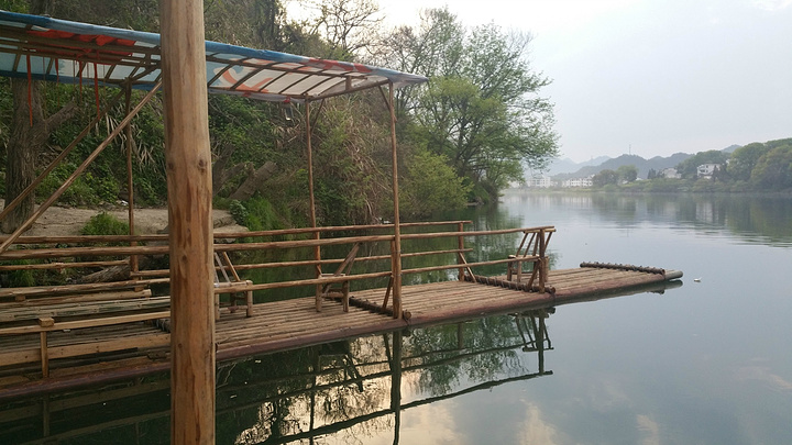 简单的竹筏子。。和周围的景色浑然天成。。。除了那个顶棚子。