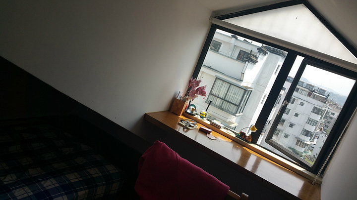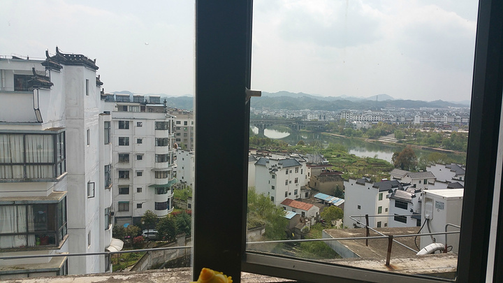 在顶层,窗外的景色也还不错~~新房子也是按照徽派建筑的样子盖的。