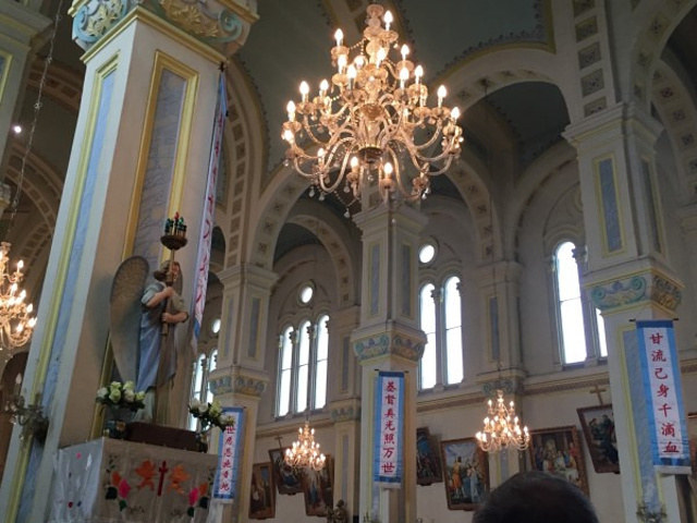西开教堂在国际商场中,出来后可以看到星巴克(天津到处都是星巴克)、哈根达斯、巴黎贝甜等店,鉴于今天还要游各种地方,可以先给自己来一杯咖啡。