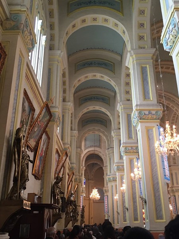一大早起来去西开教堂,因为是礼拜日又逢节假日,做礼拜的老爷爷老奶奶加上来参观的游客,整个教堂挤满了人,但主要还是教徒啦。一进门,就被罗马式的高耸拱顶、绚丽的彩绘玻璃、满满跪在地上唱着圣歌的人们震撼到了,真的是十分庄严肃穆,感觉有无形之力施加在肩膀上,令人不由得想要下跪。