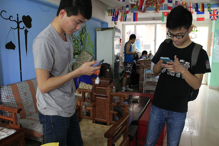 在客厅遇到了两个从肇庆学院来的学生,旅游中的人是最容易结成朋友的啦,尤其是在青旅这种有氛围的地方,所以忍不住互加了微信,看,偷拍!嘿嘿,四海之内皆兄弟呀。