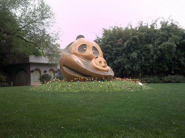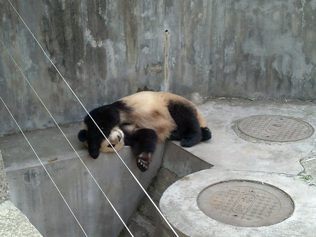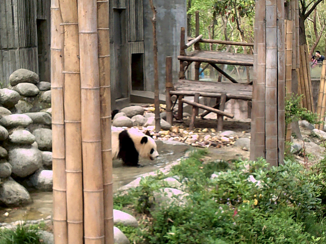 第一天,我们从重庆北站搭火车到成都站(成都站分南广场和北广场),我们把行李放在近成都站的旅馆,就往公交车站走去,转两次车,大概一个小时左右到达大熊猫基地(票价59元,学生半价),可能去到已经差不多一点了,年长的大熊猫已经用手蒙住眼睛,露出像球一样的大肚腩,睡中午觉去了,年轻一点的大熊猫精力充沛,玩水,攀爬,“打架”,非常可爱。