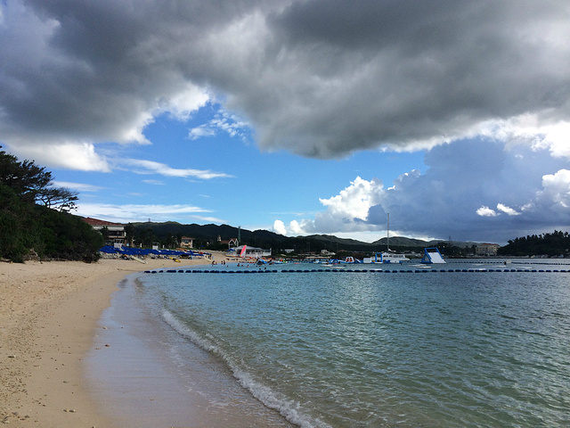 避开烈日出来游泳~很给力,出来一会儿阴天了!照顾已经很黑的俺~海里还看到一些鱼,潜到水下追鱼,它们还是比我游的快~