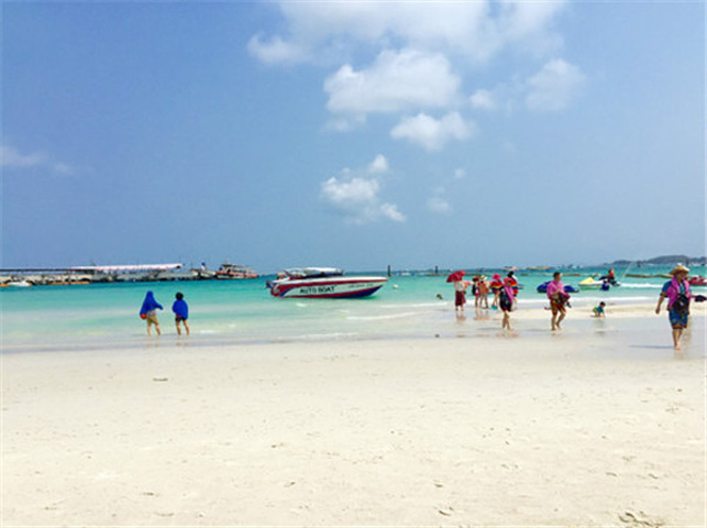 今天一早从酒店出发,乘车不一会儿就到海边。等会乘快艇去珊瑚岛和金沙岛。芭提雅的海水还是很干净很蓝的,快艇在海面上乘风破浪激起雪白的浪花,迎着海风全身融入这万顷碧波中。