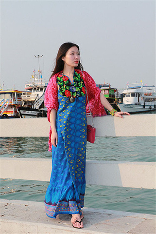 上岛后没有别的事情,喜欢潜水的,玩摩托艇的都自己去找项目完了。我个人自然是比较喜欢安静一些,晒晒太阳拍拍照就是很不错的选择嘛。这个裙子是昨天在四方水上市场刚买的,今天派上用场了。