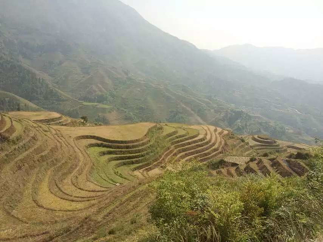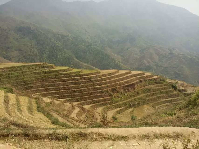 头天下午就到了龙胜梯田了。可以在大寨里住一晚上,那边有很多住宿的地方。第二天一早去看日出,看梯田。可惜我早去了几天,因为每年农历三月三是防水节,放了水的梯田更好看,还有就是插了水稻以后去看绿油油的,很漂亮。秋收的时候,谷物都长熟了吗,金黄黄的一片,不是更漂亮么。