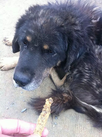 在宾馆门口闲着没事,喂他们家的狗狗,特听话