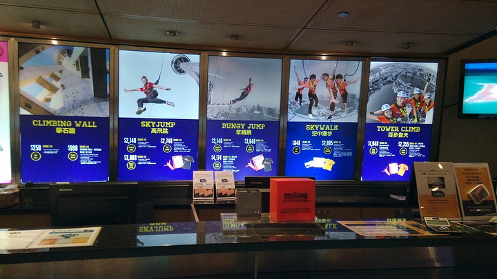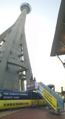 在葡京到旅游塔,步行要30分钟,公交几个站。任君选择。还有那个蹦极,也就是澳门讲的 笨猪跳。土豪的可以去玩下。票费¥三千多大洋一次。观光塔只是观光是135元门票。我是步行的,沿岸边走的。