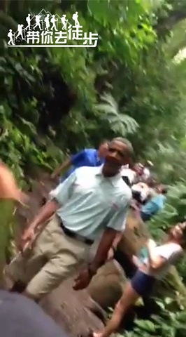 美国总统奥巴马在马诺阿瀑布小径徒步。