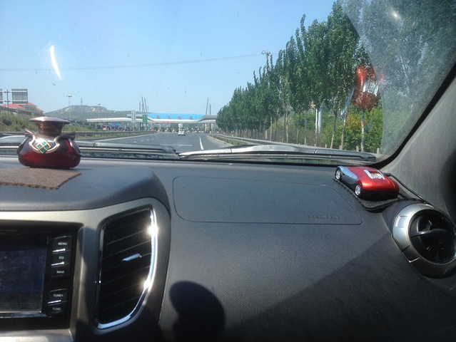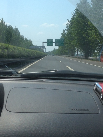 盘海营高速上奔驰,两车道,限速100,路况不错,两旁的绿化也很好
