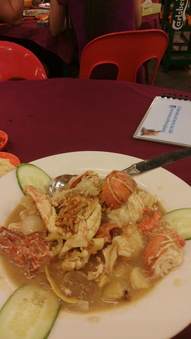 到了亚庇,我们等到6:30换钱的窗口开张后就赶紧换了50快人民币等值的马币,在机场100块可以换52马币,到市里可以换58马币,所以我们乘坐机场大巴在第一站太平洋商厦下,但是商厦10:00-10:30才开始营业。商厦一楼有家老大哥港式烧腊快餐不错,太平洋商厦对面就是亚洲城,传说中的大茄来很容易找到,不过我们打算到斗湖的金陵吃海鲜(事实证明奶油老虎虾的话还是金陵便宜些),那个榴莲棒冰果真是很好吃。卡帕莱上的三餐照顾到东南亚和西方口味,还是挺不错滴~
