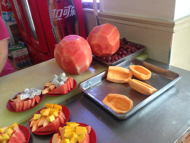 芙蓉餐厅夜游很多卖水果的,这西瓜确实切得很有水平!