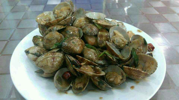 两个人吃了海鲜 炒蛤。具体名字忘记了(好吃)38元每份 半份皮皮虾饺子一份55 加上餐具费花了70元