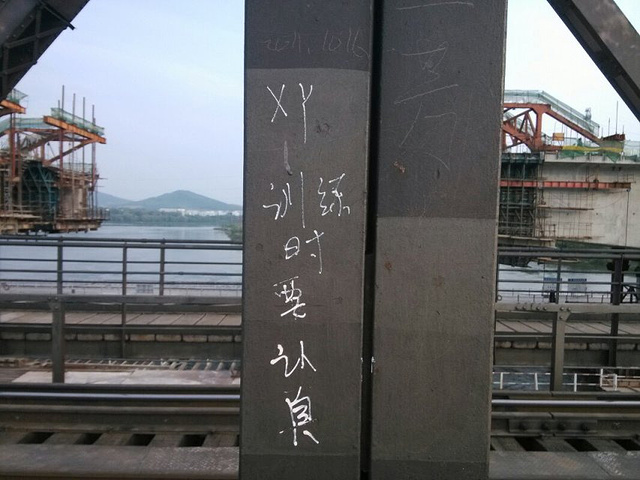 起来后决定去北华东区吃煎饼果子,然后看见大铁桥,就决定从上面穿过,还能走个进路。虽然这个桥是他妈该死的小日本修的,但十年没走过还是有点念念不忘。