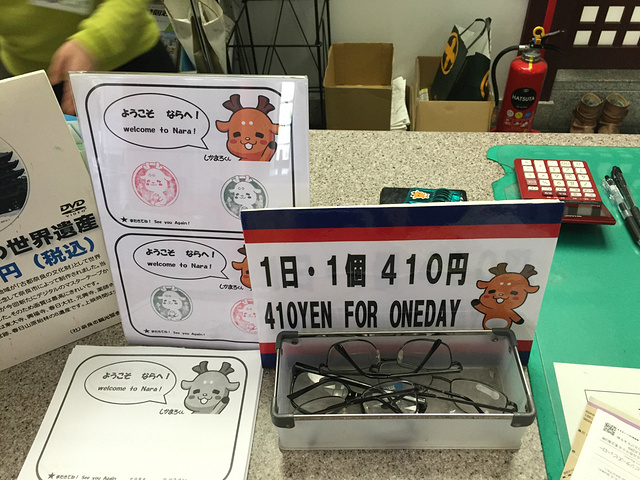 奈良的车站比较简单,出门会有存包处,因为办离店了所以一直拖着行李,看到存包处简直像是看到了救星奈良车站这里的颜色真是超级萌,阴天的光线不好,拍不出效果存包的地方还可以盖萌萌哒章,寄存价格见图,其实很便宜,可以从早上一直存到7点!来自游记日语0基础的7日游-奈良、京都、大阪