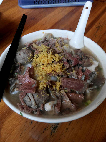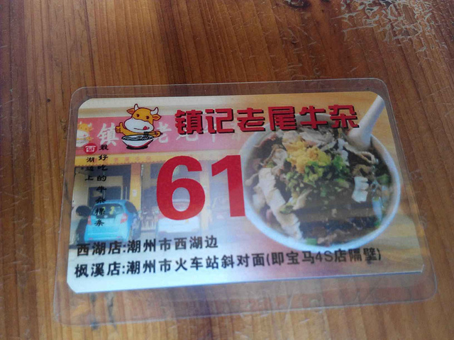 放下行李后,刚认识的驴友,叫上他朋友带我们游潮州,潮州的第一站就是带我们去吃最出名的镇记牛肉粉,去到拿了牌号,我们的号是61号,但是去到的号才到34,然后我们为了吃,等了一个小时,才到,这粉分大中小,我们就吃了份15元小份的,不过我们已经觉得好大碗了,然后我们吃的饱饱的,继续下一站。
