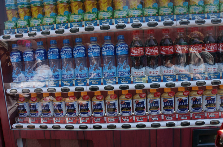 日本街头到处都是这种饮料贩卖机,优点是特别方面,走几步就有,缺点是较贵。日本的超市都是连锁的,不是走几步就能找见的。