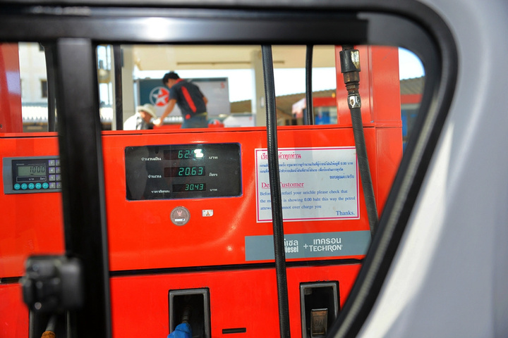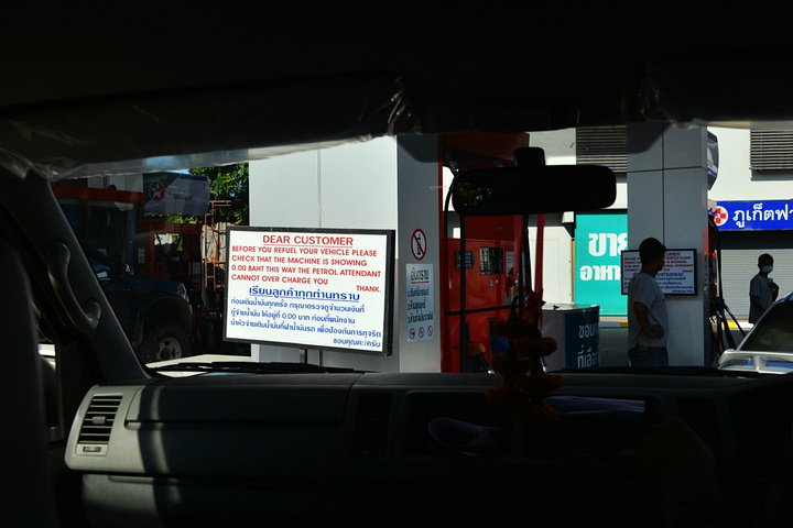 包车环岛游,司机在加油站加油。