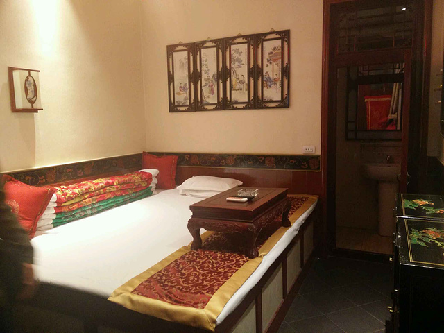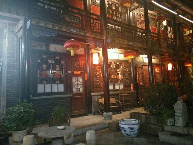 北京下午的动车,四个多小时,大概晚上七点多到达,动车站出门台阶下边有很多108路公交车,可以直接到古城,大概半个小时。这路公交是环线,去哪个门上车要问好,可以到南门,北门,西门(火车站)。因为之前在去哪订了酒店,离西门近点,于是就去了西门。顺利到达火车站,再走10分钟左右就到了古城西门,非常好找。九点了古城街道两边还有很多店开着。跟着手机地图找到了酒店_程家老院,环境真不错,一把锁头,古色古香的房间,让人感觉回到了自己家。之后根据店员推荐去了狮子头饭店,量一般,价格比较贵,不知道是不是节日的关系。吃了当地小吃栲栳栳,味道一般,刀削面不错!牛肉好吃,就是给的太少了!