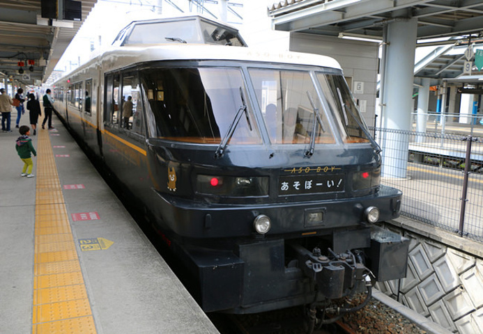 乘阿苏男孩101号从熊本来到阿苏,这列火车都是指定席,必须提前预约。