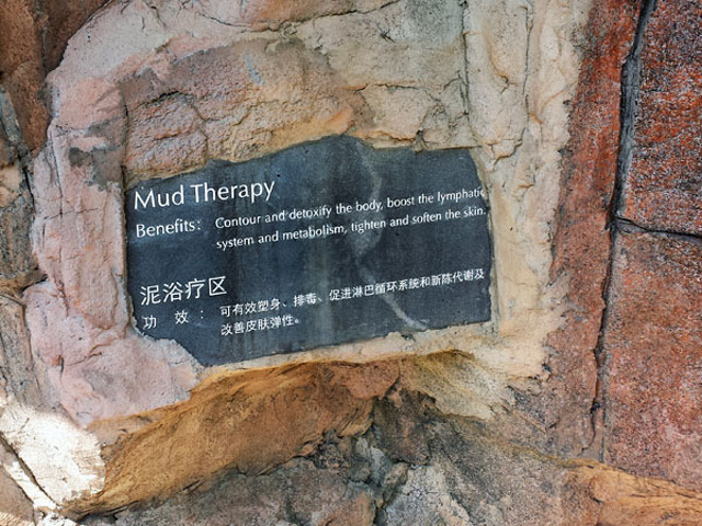 泥浆广场,可自行选择不同功效的矿物泥,涂抹在身上,能净化身体杂质,令肌肤柔软嫩滑