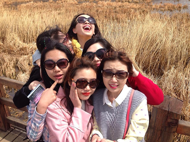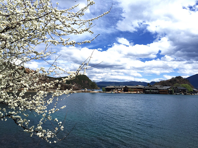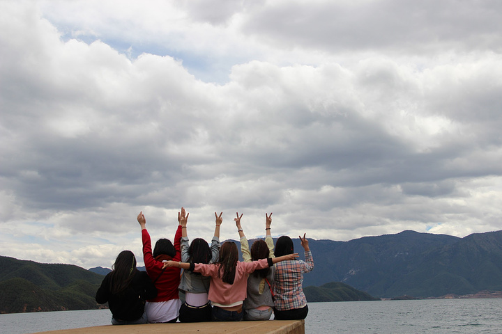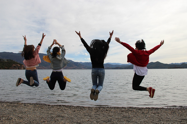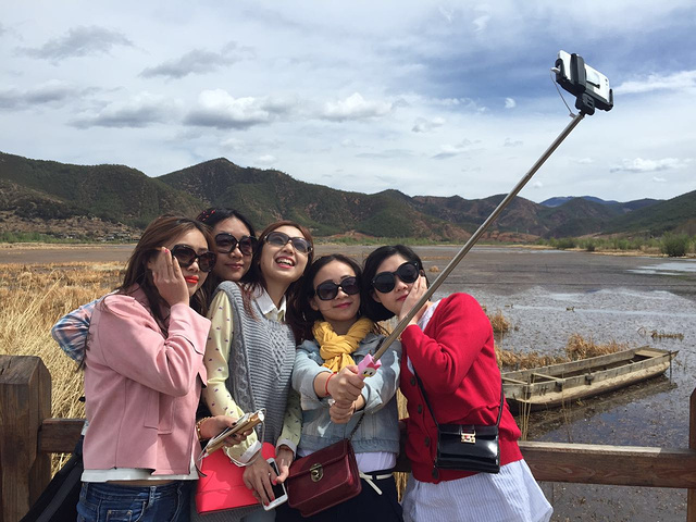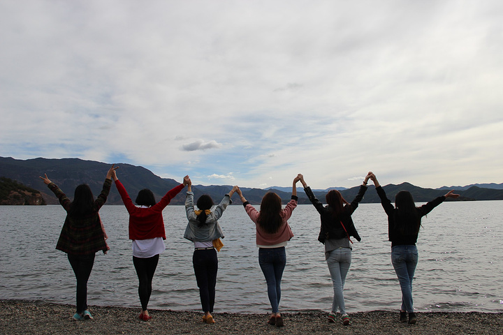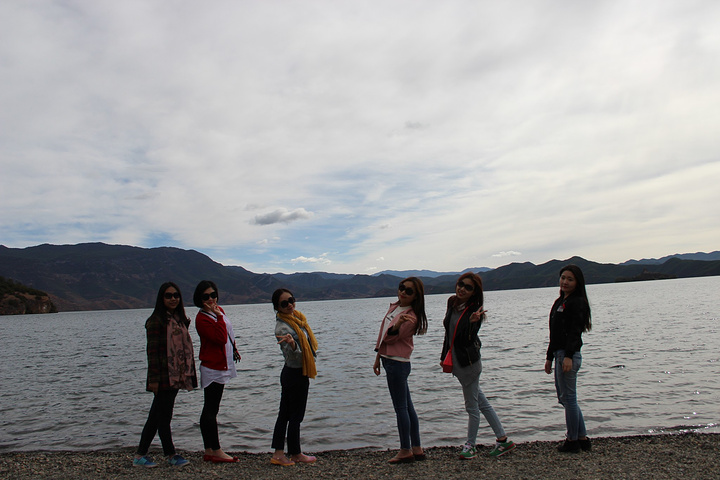 碰巧环湖的这一天,厚厚的云层把蓝天和太阳遮住了,它们偶尔露一露脸也可以让我们一行六人开心起来。虽然情人树没有发芽,虽然草海也是枯黄,但是一路同行的人是对的,这些小小的遗憾也丝毫影响不了心情。