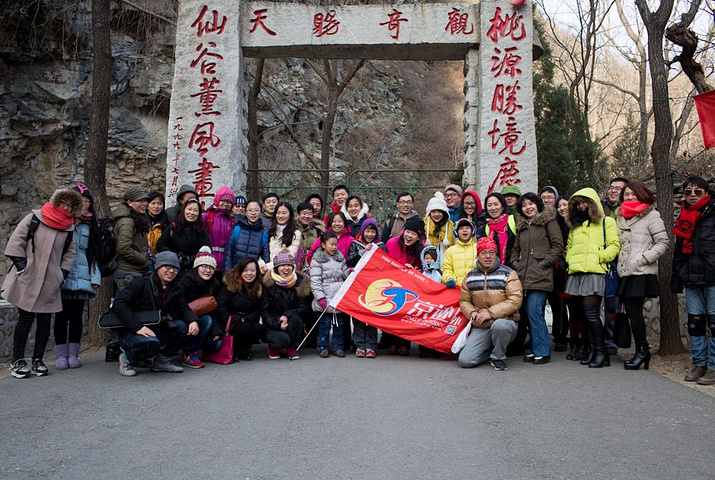 我们是周日早晨七点半在惠新西街南口地铁站集合出发,大概一个半小时左右就到达景区,由于是周天,人还算比较多的。我们在桃源仙谷大门的合影