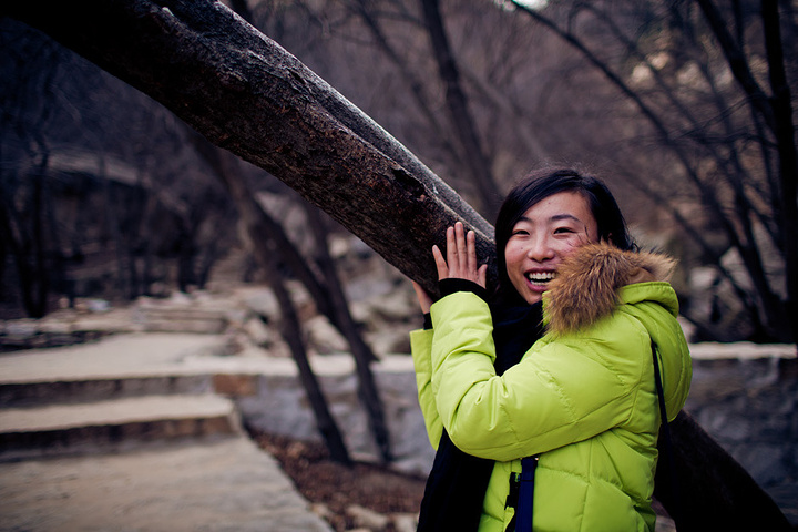 小武同学由于注意力集中在高跟鞋上结果不小心头撞到这颗树上了,下山后乐观的合影留念,以警示后人。