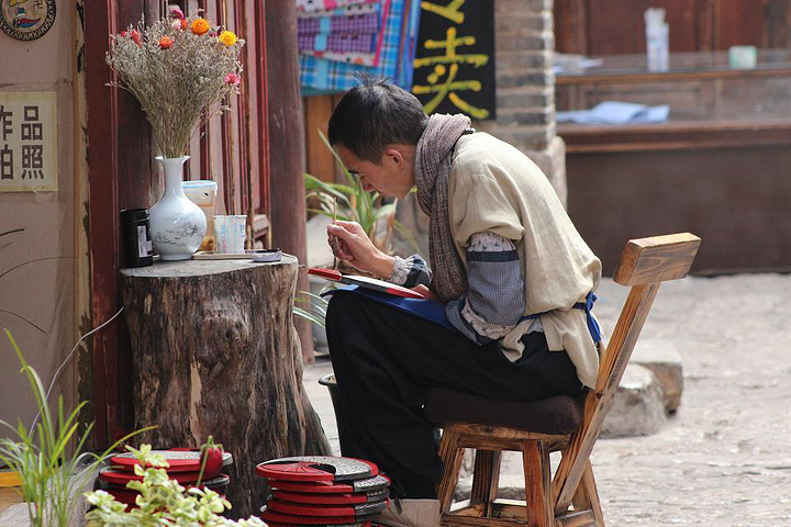 丽江街道上好多这样的手工艺人