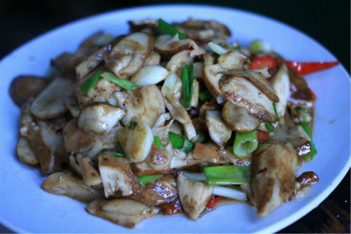 好吧,我就在店门外的水池里自己把这些牛肝菌都给洗白白了再交大姐处理。