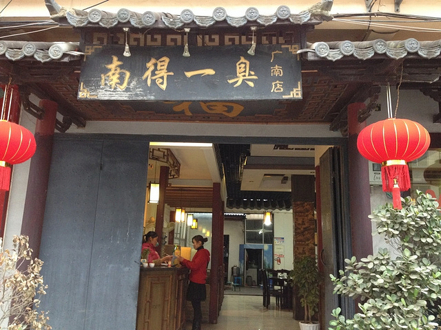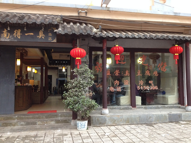 从普者黑到广南县安排好住宿后,就上街找吃的。看到一家打着臭豆腐鸡招牌的店,觉得挺新奇,于是就进去了。