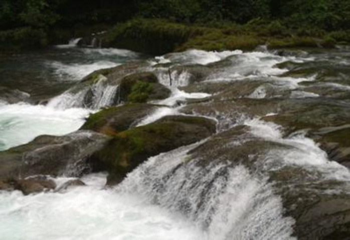 水上森林又名瑶池。灌木丛生的树林中,清澈的河水穿梭而流,到处是古藤缠绕,绿荫绕绕。