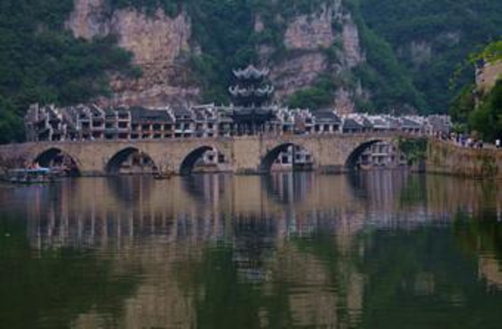 镇远舞阳河有小三峡美称。河水如碧玉般清澈碧绿,河面幽静清亮,两岸山势峻峭雄伟,幽幽绿树点缀山崖,瀑布流泉飞洒银珠,景色万千,目不暇接。