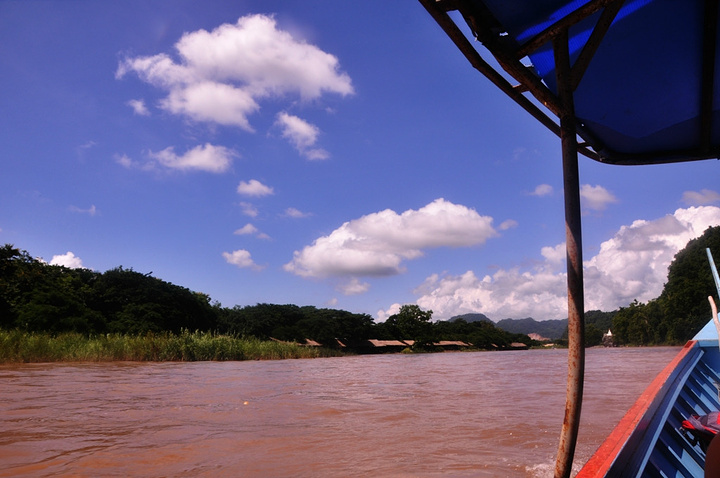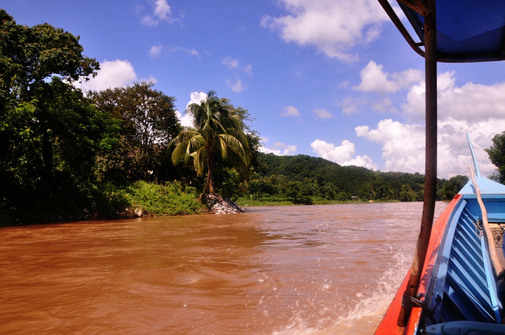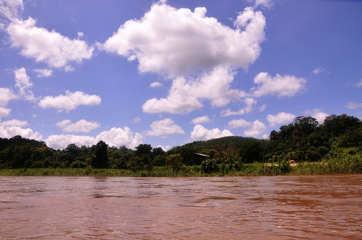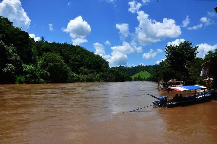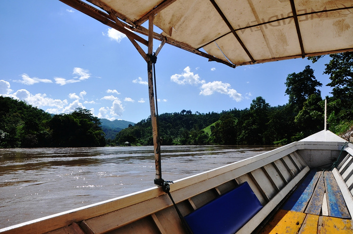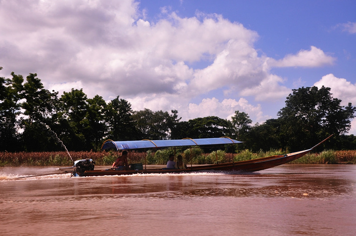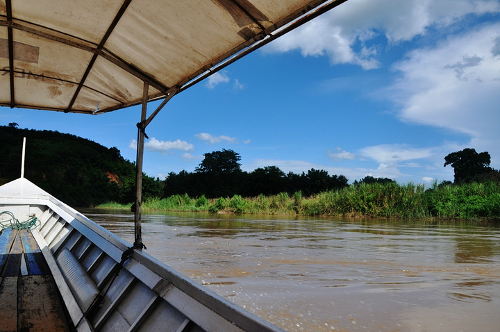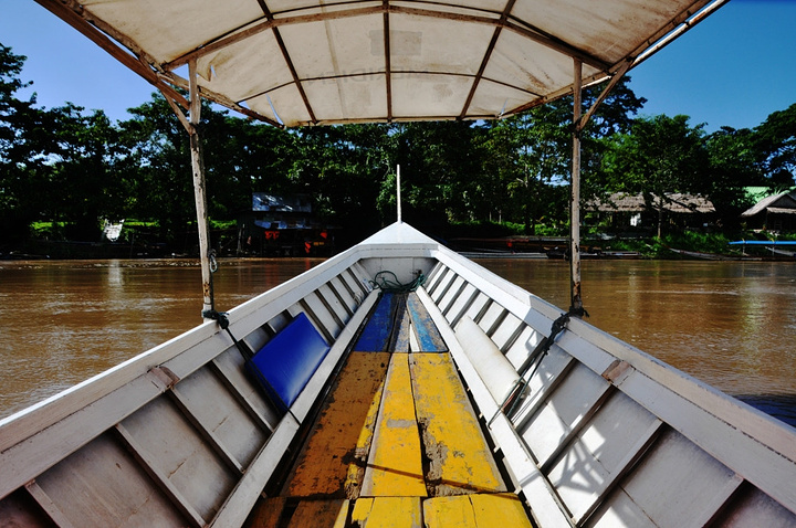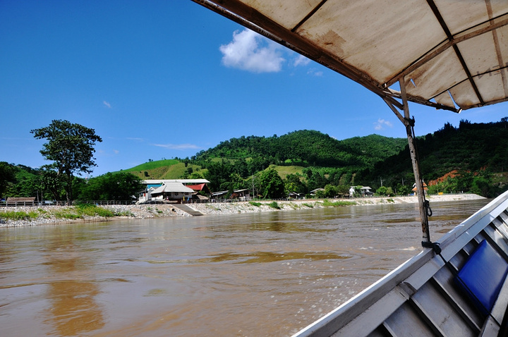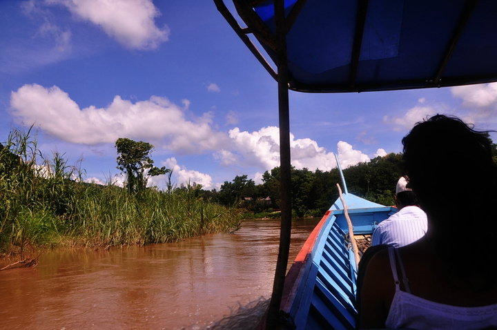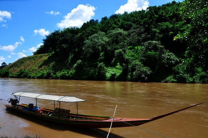 由于被晒伤 所以放弃了骑摩托的想法 座车去河边的码头 然后乘小长尾船前往这个叫ban ruammit的距清莱约二十公里的克伦族村落 从这个村落可以步行至周边的瑶族 拉軲族 阿卡族等少数民族村落 这儿离金三角很近 所以对我来说很有神秘感