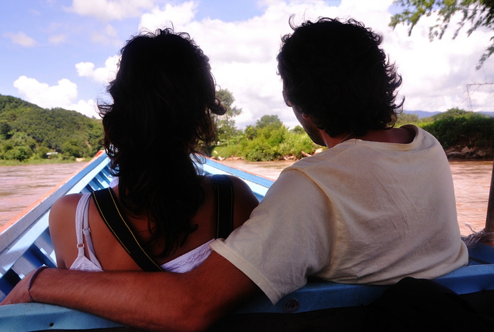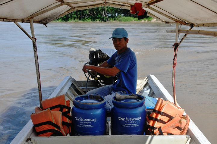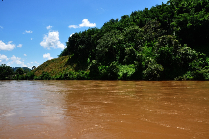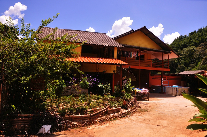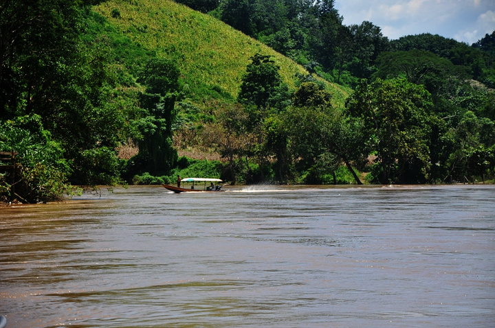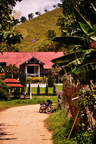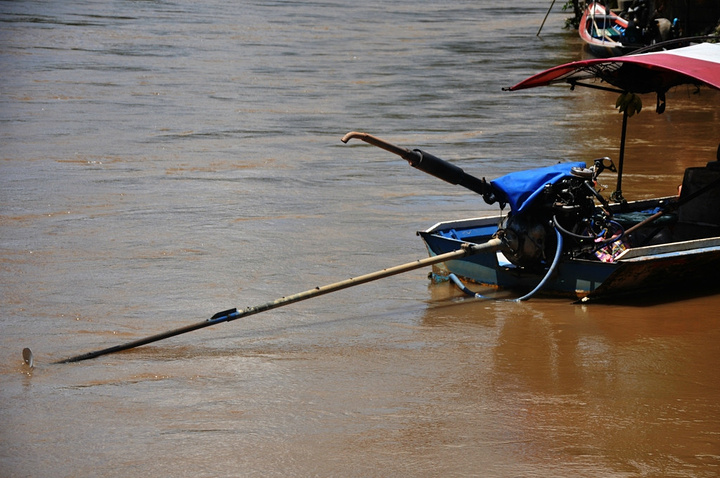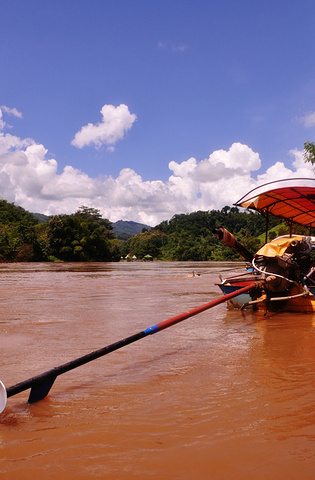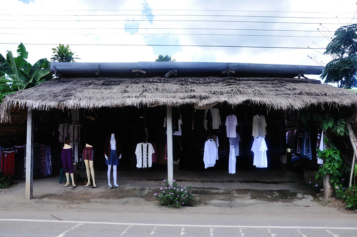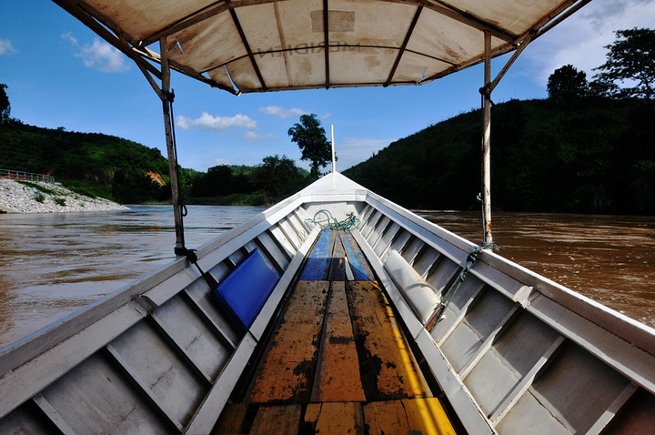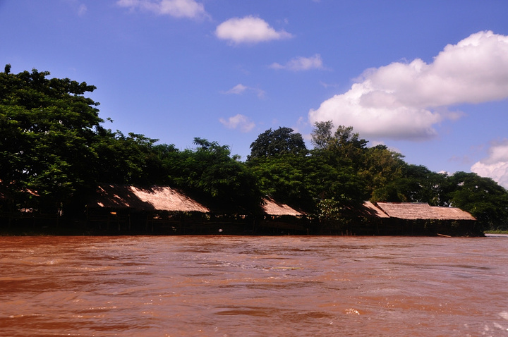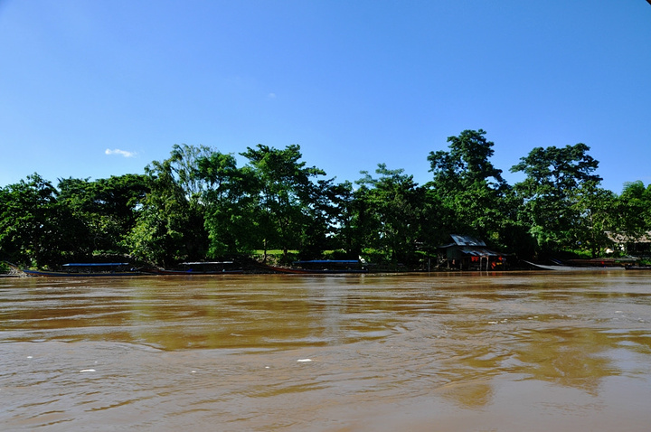 由于被晒伤 所以放弃了骑摩托的想法 座车去河边的码头 然后乘小长尾船前往这个叫ban ruammit的距清莱约二十公里的克伦族村落 从这个村落可以步行至周边的瑶族 拉軲族 阿卡族等少数民族村落 这儿离金三角很近 所以对我来说很有神秘感