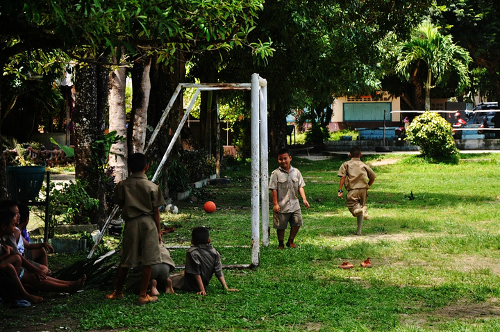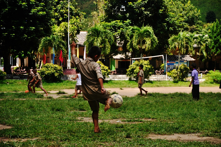 闲逛到一所学校 看到孩子们在踢足球 可是很多孩子都是光着脚踢球
