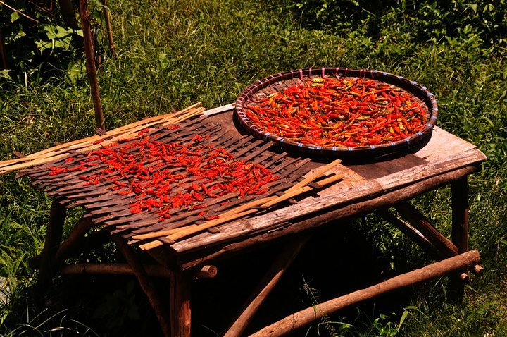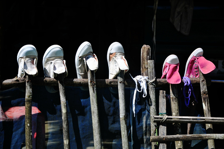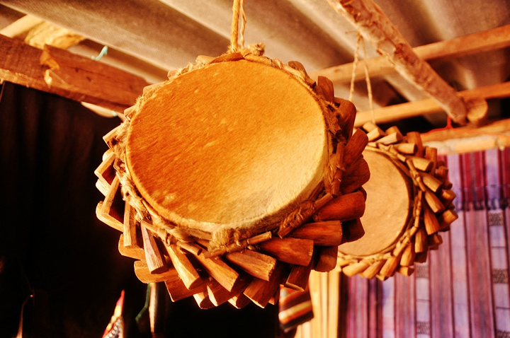 在阿卡族村民家里发现了这个风格迥异的自制手鼓 不知是什么动物皮毛做的 而且鼓皮上全都是动物毛发 敲了几下 声音居然很清脆 问他多少钱 他说不卖 因为村子里举行活动时他演出还要用