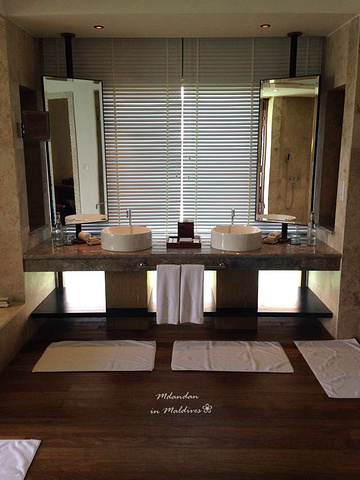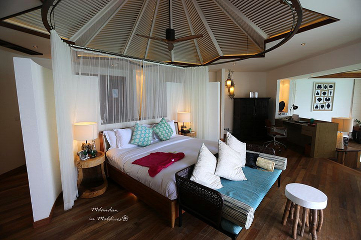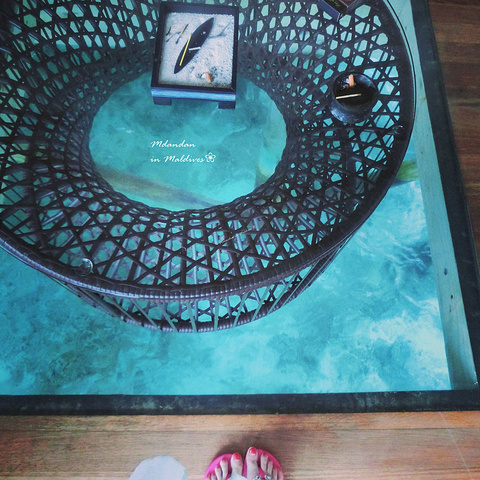 之前一直向往的是W岛,特别喜欢W岛房间里可以看到大海的玻璃,哈哈JV也有,虽然不是圆的,但这个感觉也超棒,个人觉得水屋比沙屋更美丽
