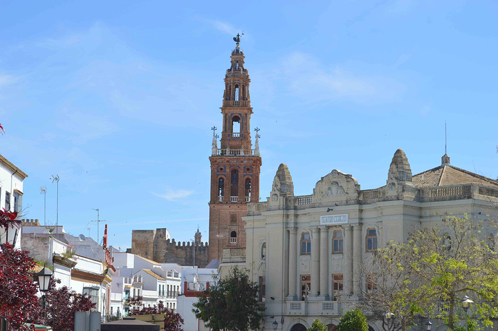 一小时不到我们来到了卡莫那,车子停在了市中心的 Paseo del Estatuto。不远处是卡莫那的大教堂 Church of San Pedro,看到它我不禁会心地微笑,英国宫的那位女士称它是“微版的塞维利亚主教堂”,此时我发现两者的外形真的很相似。