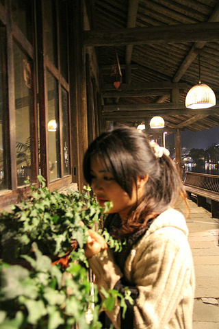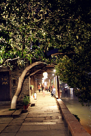 一下子,天黑了,拍不出好看的油菜花了,我们走着田间小道,前面后面多没有人,略害怕,指引我们的也是有前方的宝塔。很好不容易不在游离在西栅的外围,走到了酒吧街。我不明白为什么古色古香的这些古镇里都充斥着求艳遇的酒吧。这里的酒吧里还有菲律宾的酒吧女穿的很sexy在台上唱歌跳舞,让我觉得略模糊了古镇的风韵。倒是一些慢摇的酒吧,还能从歌手的嗓音中感受到夜色中古镇的感觉。