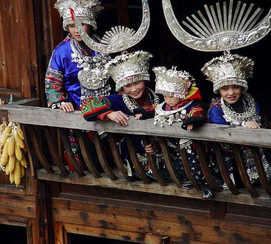 盛大的歌舞是热情的苗寨姑娘欢迎客人的直接表现,在这里,你会被这群姑娘感染,跟着旋转起来。