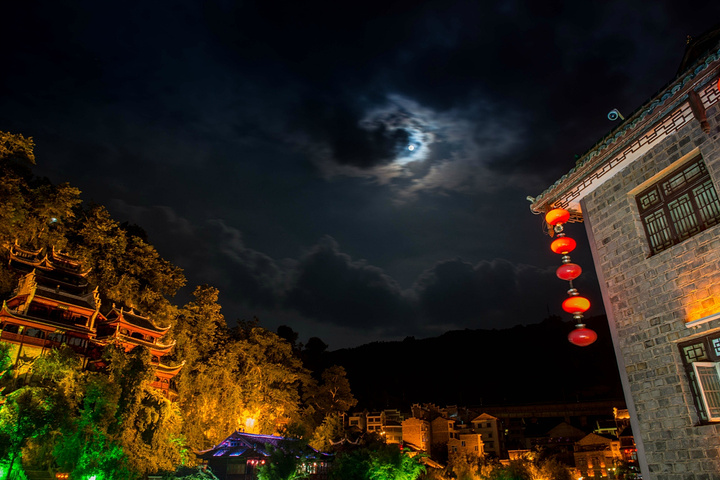 夜晚的到来,天空中的太极月亮,也赋予了这座古城一种美丽的传说