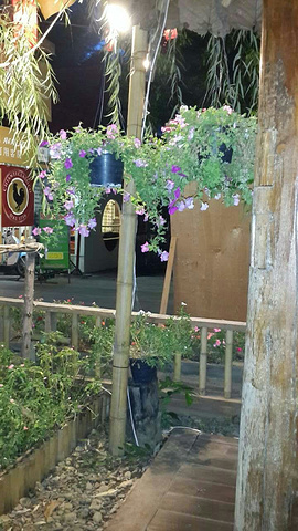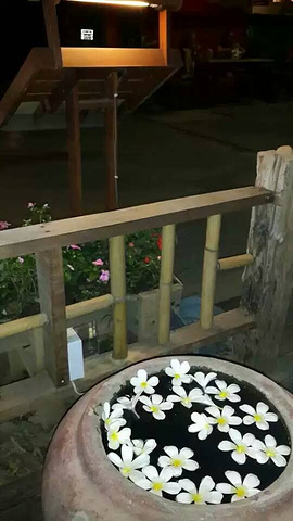 我们选了靠近栅栏的一张餐桌,扭头便可以看到街上来来往往的人们,还有桌边这个洒满鲜花的水缸。在清迈和拜城的那些日子,我总是在想,到底是什么原因让这里的人们在繁琐中如此懂得安静,懂得回归最原始的生活乐趣。