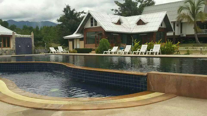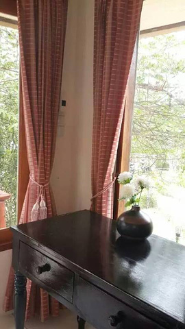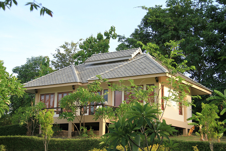 在我看来,旅行和旅游的最大不同就在于。它没有提前规划好的路线,更不要求在规划的时间内走遍提前列入单子的景点(就如《泰囧》里的王宝宝),旅行更多的是,随遇而安,丰俭由人就好。在去拜城的头一天晚上我们才临时在网上预定了这家酒店,让我惊喜的是这家坐落在拜城乡间一处农庄的别墅旅馆,老板竟然是位华裔,虽然已移民泰国三代人之久,虽然普通话很生硬,但远在异国他乡,能住到说中国话的老板的旅馆里,入住和其他事情交流起来方便多了。更值得一提的是,价格真的很便宜。这么大一栋别墅居然只属于我们两个人。房前屋后绿树成荫,鸟语花香,真的能让我们小小的过了一把庄园主人的瘾呢