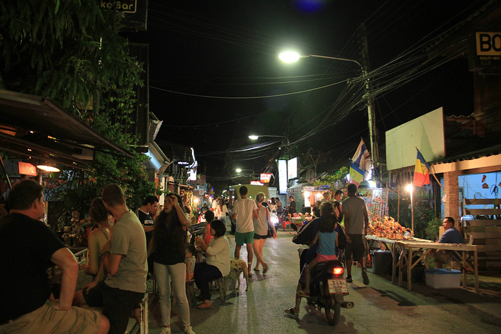 拜城的夜市远远不及清迈夜市那般繁荣规范,但或许这正是吸引无数悠闲者来这里旅行、度假甚至长住的的原因。拜城也名拜县,但在我看来,它实际上只是一个小镇,这个季节,白天酷热无比,等到夜幕降临直至凌晨才是人们出来活动的最好时段。背心,热裤,人字拖是街上的主旋律,手工装饰品,别具民族特色的服装、包包和纪念品铺满了地上的小摊儿和街边的小铺,还有席地而坐的卖艺者。逛遍整个夜市,除了部分店主是泰国人外,其他大多是黄头发,穿着闲散的老外和装束相对拘束的中国人。