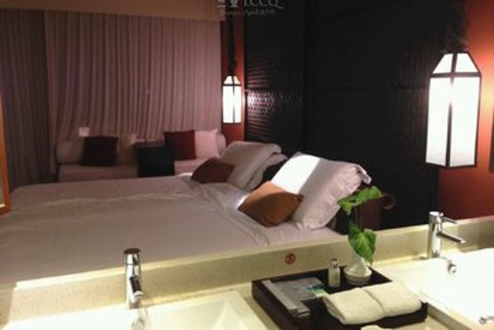 相比之前两家住的酒店,君澜算比较老一点,但还是很成熟的度假酒店。房间是东南亚风格的,开放的盥洗区也比较有特色。